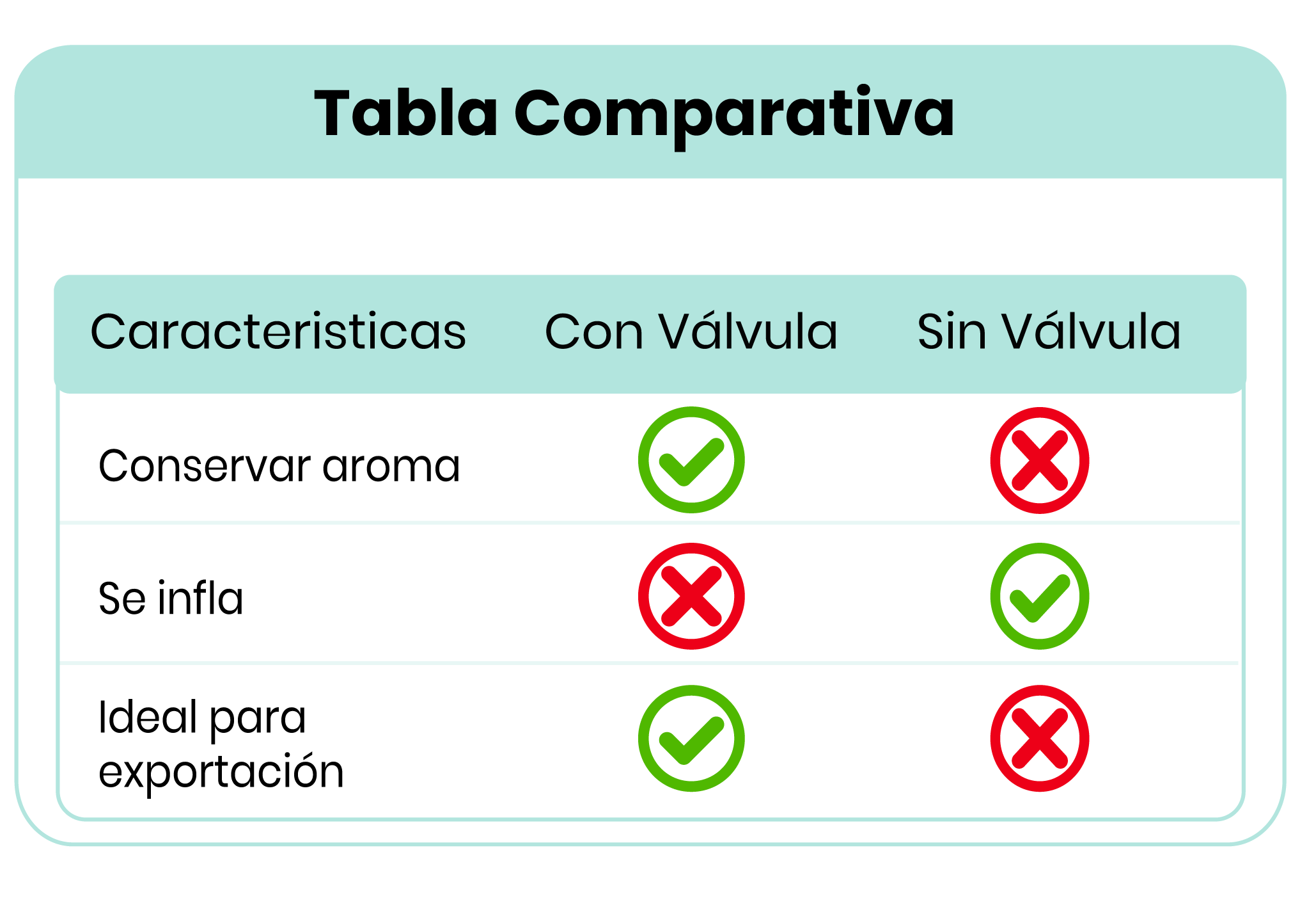 Si el café se sella herméticamente sin válvula, el gas puede quedar atrapado y afectar tanto el empaque como la calidad del producto.